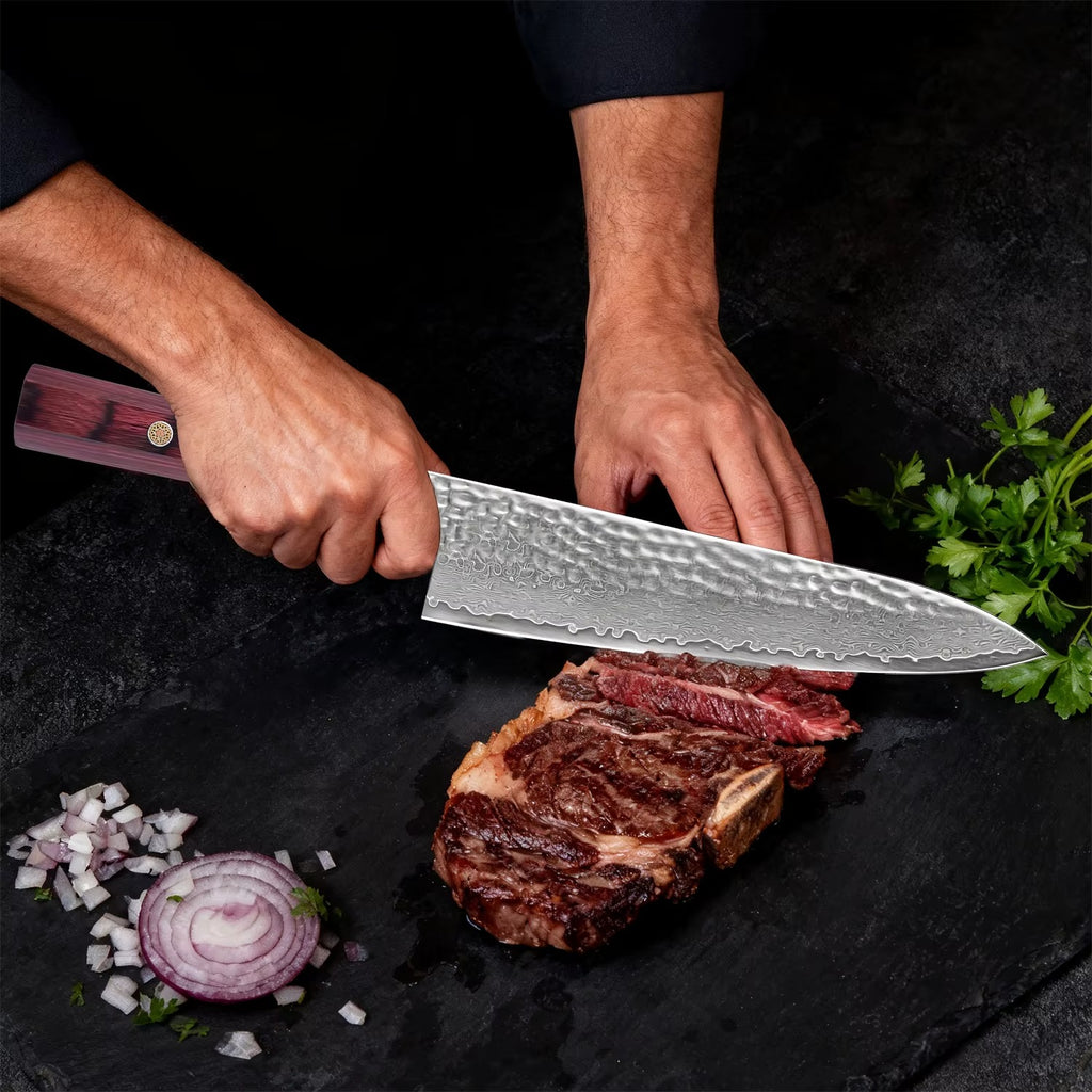 Its ultra-sharp Damascus blade delivers exceptional cutting performance, while the ergonomic handle ensures comfort during long cooking sessions. Whether you're a home cook or a professional chef, this knife offers reliability, beauty, and long-lasting sharpness.