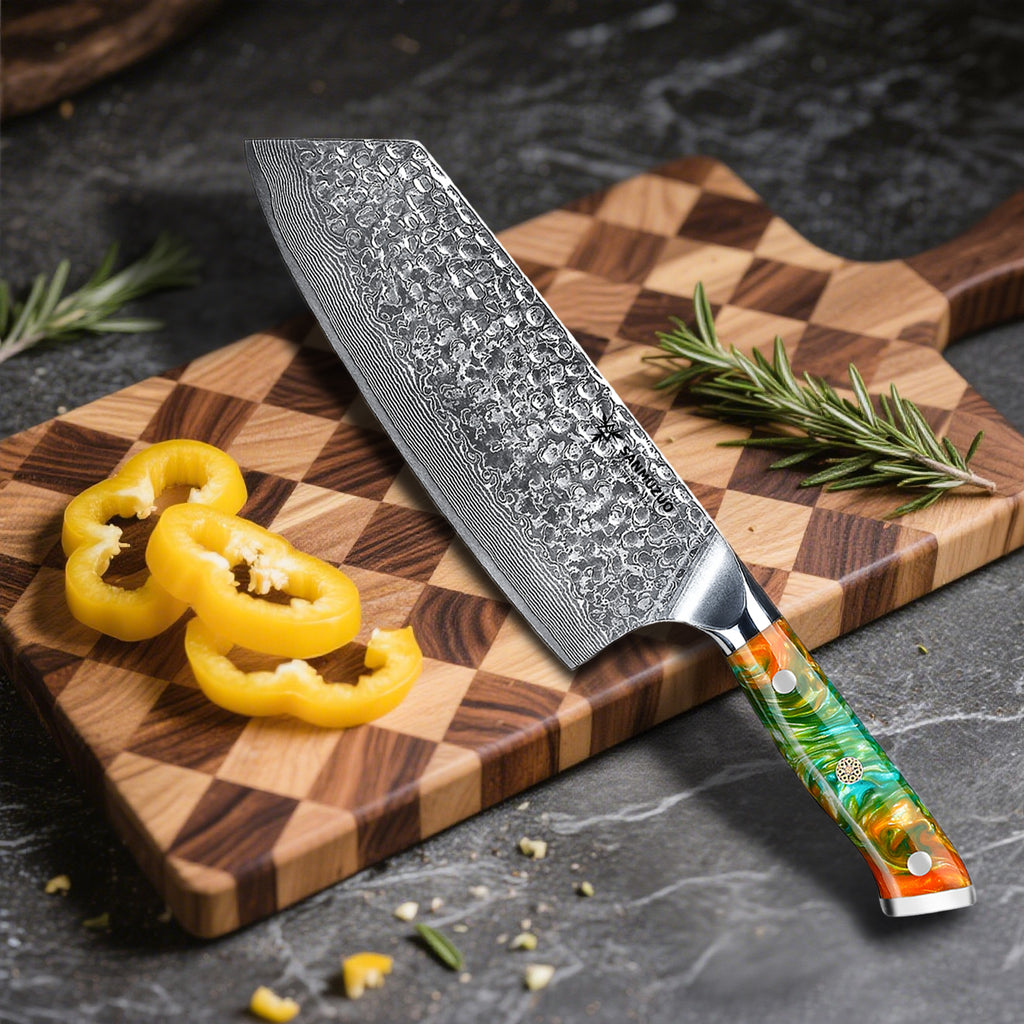 Upgrade your vegetable prep with this beautifully crafted Damascus Nakiri knife—combining style, sharpness, and functionality for a seamless cooking experience.