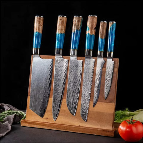 Set Includes: 6 knives—Chef, Cleaver, Bread, Santoku, Boning, Utility