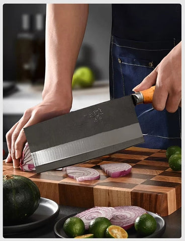 Professional Hand-Forged Chef Cleaver Knife – High-Carbon Steel + Wooden Handle (Includes Sharpener)