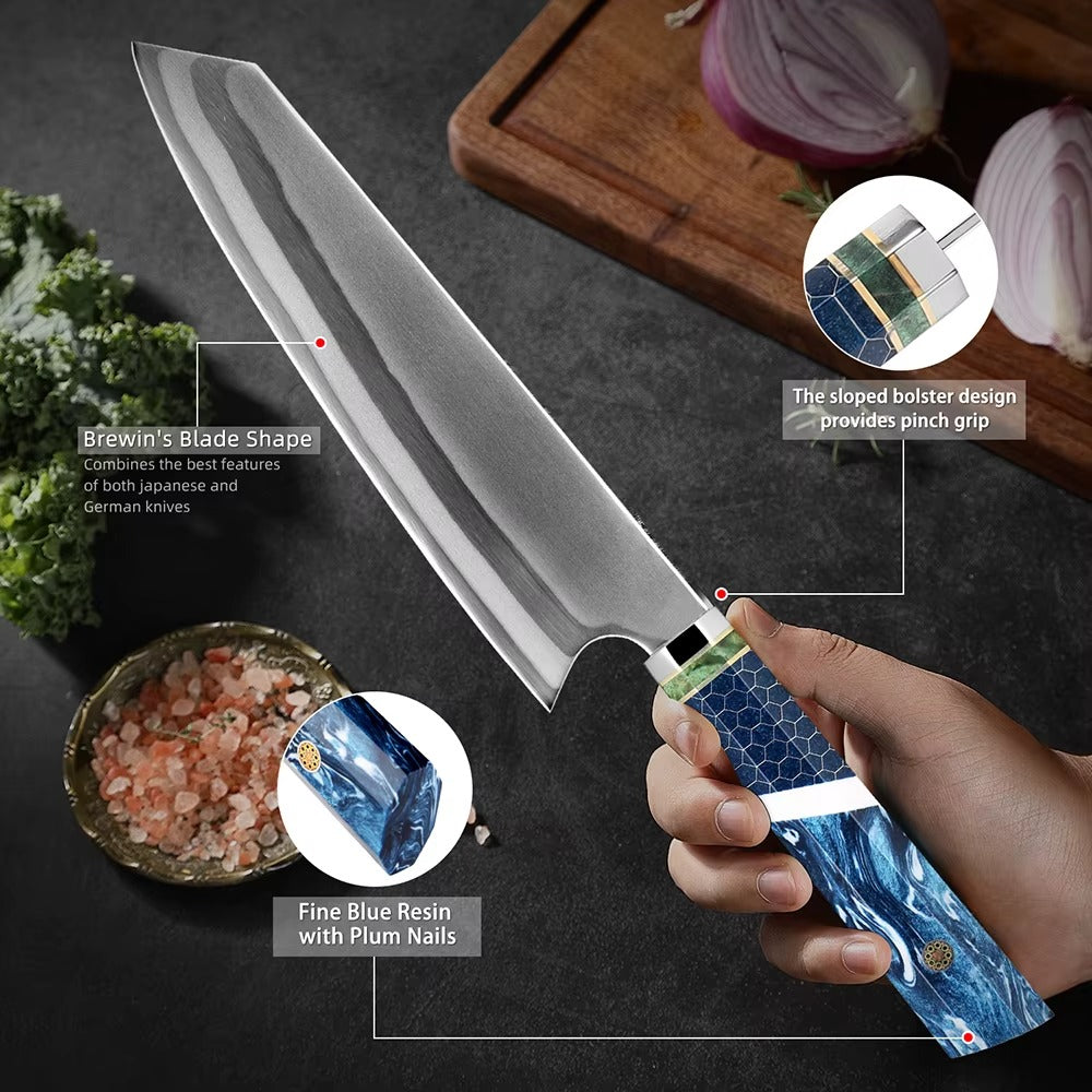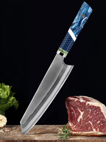 XITUO 8 Inch Kiritsuke Chef Knife 7 Layer 440C Steel Blue Resin Honeycomb Handle